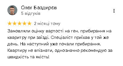 та получіть знижку 10% на перше прибирання + 1 з 3