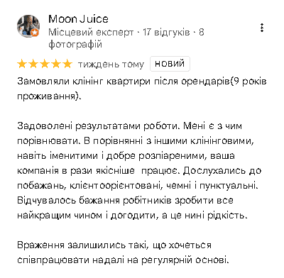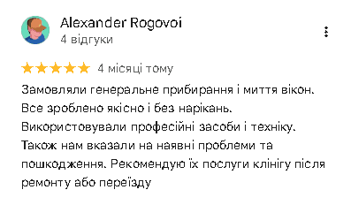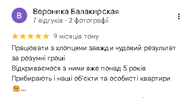 Гарантуємо турботу та постійний зв’язок. Ми завжди на зв’язку — відповімо, проконсультуємо, надамо фото чи відео з об’єкта у будь-який момент. Наш менеджер підтримає вас до й після прибирання. А для зручності іноземних клієнтів — вільно спілкуємось англійською.