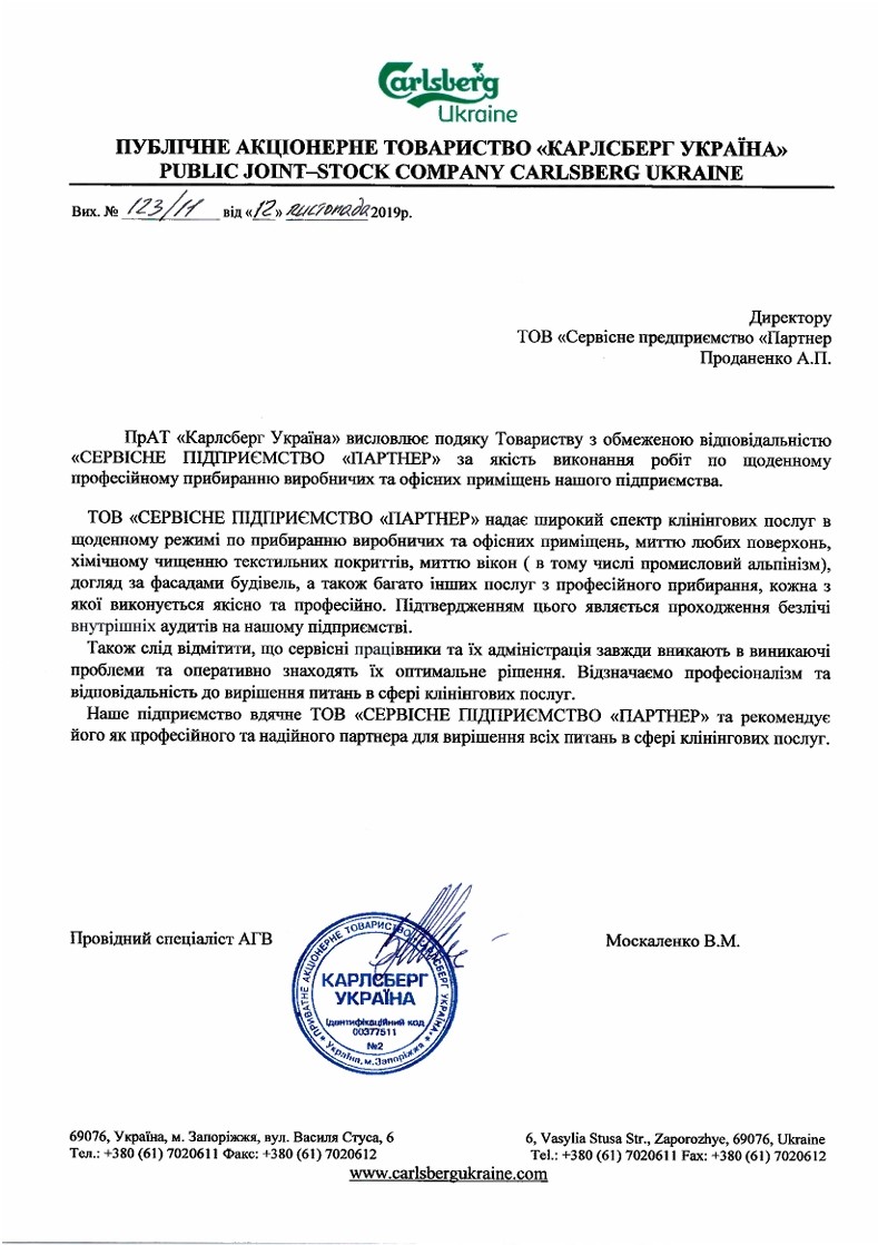 гарантією якості та пунктуальності